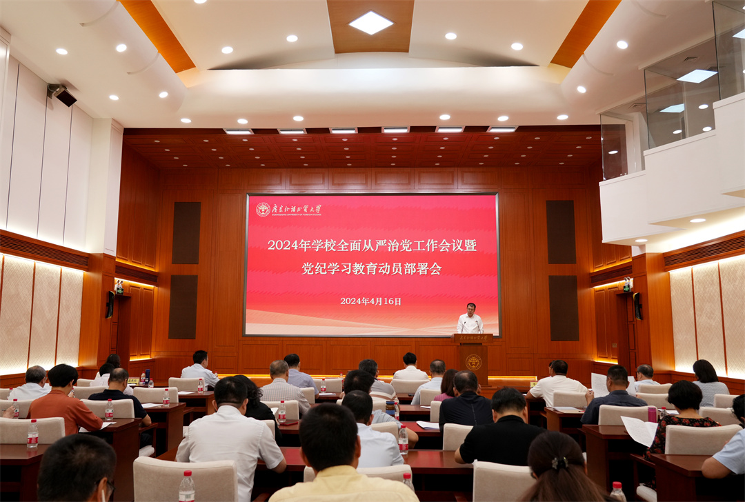 4月16日,学校在白云山校区国际会议厅召开2024年学校全面从严治党工作会议暨党纪学习教育动员部署会。校党委书记石佑启对学校全面从严治党工作和党纪学习教育进行部署,校党委副书记、校长闫相斌主持会议。校纪委书记、省监委驻校监察专员温燕欢,校党委副书记唐锐,校党委副书记李云明先后作纪检监察工作、基层党建及“双百行动”、政治建设及保密工作部署。校领导,校党委委员、校纪委委员,党政机关、科研、教辅单位主要负责人,各学院党政主要负责人,各二级党组织纪委书记、专职纪检员、纪检委员参加会议。会议以视频会议的方式在白云山校区和大学城校区同步召开。